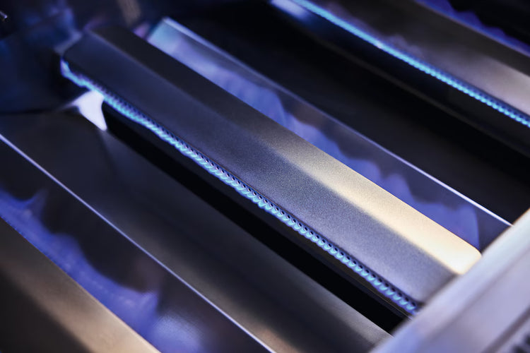 Dank seiner durchdachten Brennerarchitektur bietet der Miele Fire Pro außergewöhnliche Flexibilität beim Grillen. Vier Edelstahl-Guss-Hauptbrenner sorgen für eine gleichmäßige Wärmeverteilung auf der gesamten Grillfläche, während der integrierte Heckbrenner optimale Bedingungen für indirektes Grillen und Rotisserie schafft.