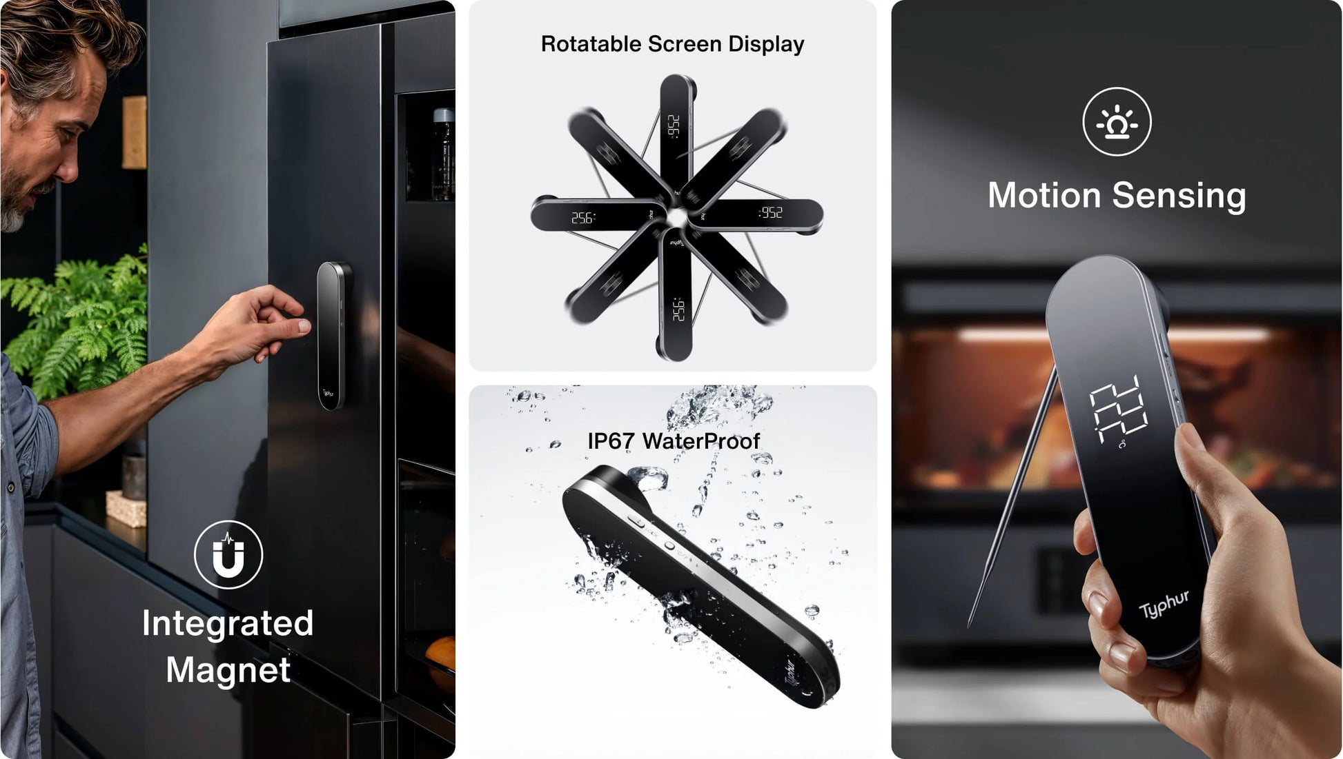 Schluss mit langem Warten am heißen Grill! Das Typhur InstaProbe Core setzt neue Maßstäbe in Sachen Geschwindigkeit und Genauigkeit. Mit einer Reaktionszeit von nur 0,5 Sekunden und einer Genauigkeit von ±0,3°C liefert es Ihnen sofort den exakten Garpunkt – egal ob für Steak, Fisch, Braten oder Backwaren.