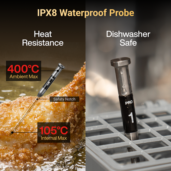 2. Robust & Spülmaschinenfest: Die Sonden sind aus hochwertigem Zirkonia-Keramik und Edelstahl gefertigt. Sie halten extremen Temperaturen stand und lassen sich nach dem Grillen einfach in der Spülmaschine reinigen.