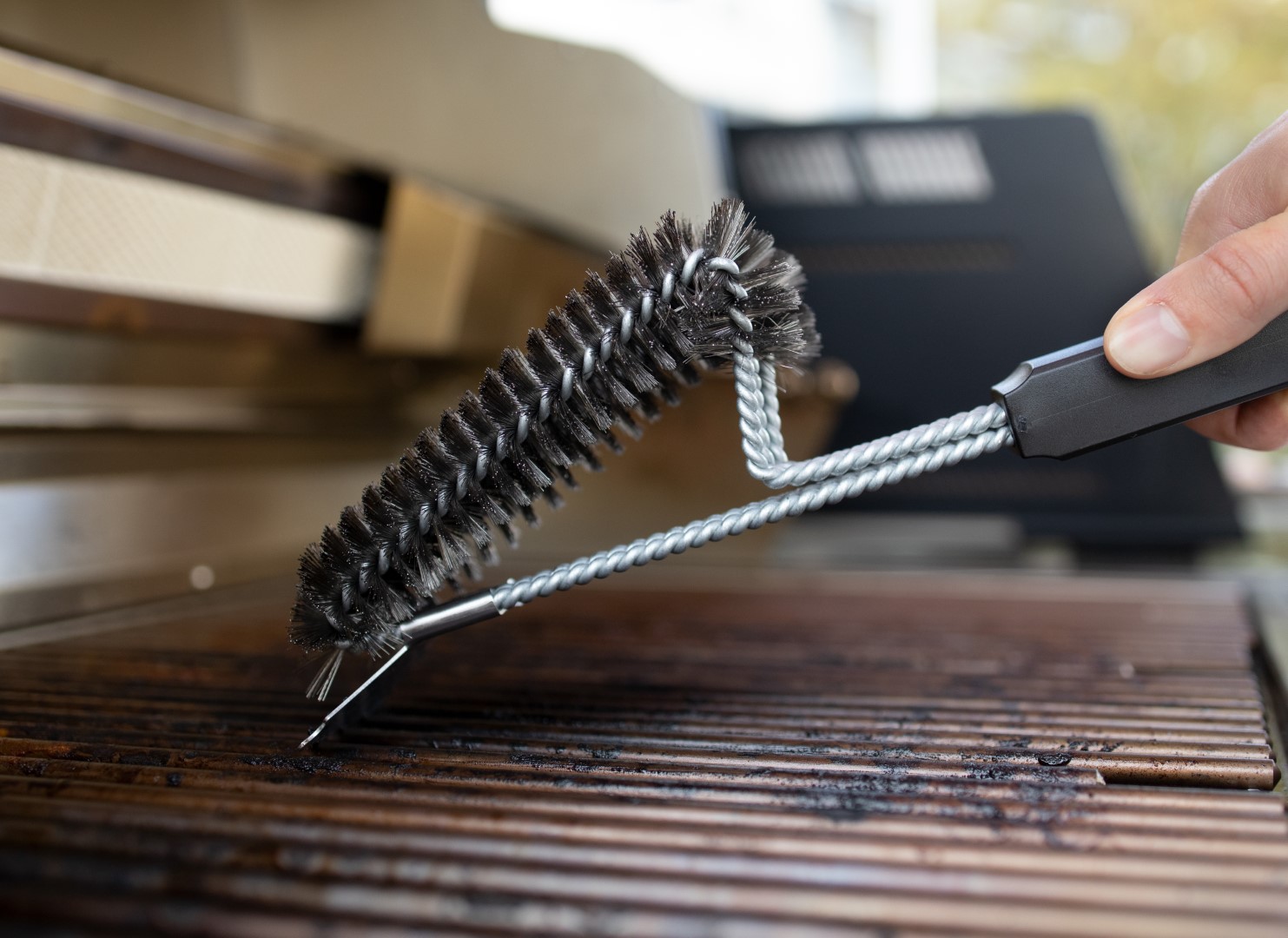 Aufgrund des robusten Griffs liegt die Grillbürste besonders gut in der Hand.