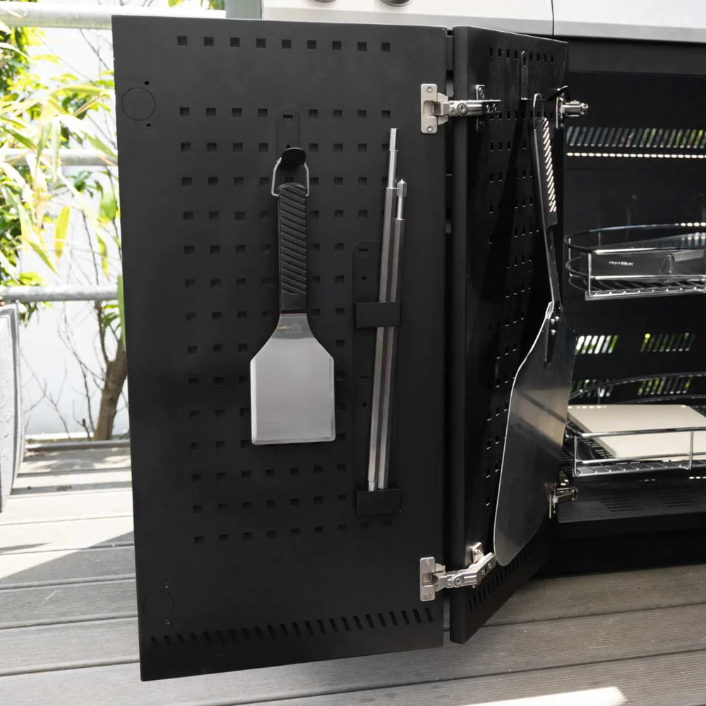 - 1x Halterung für Rotisseriespieß zum Einhängen an Otto Wilde Modultüren.