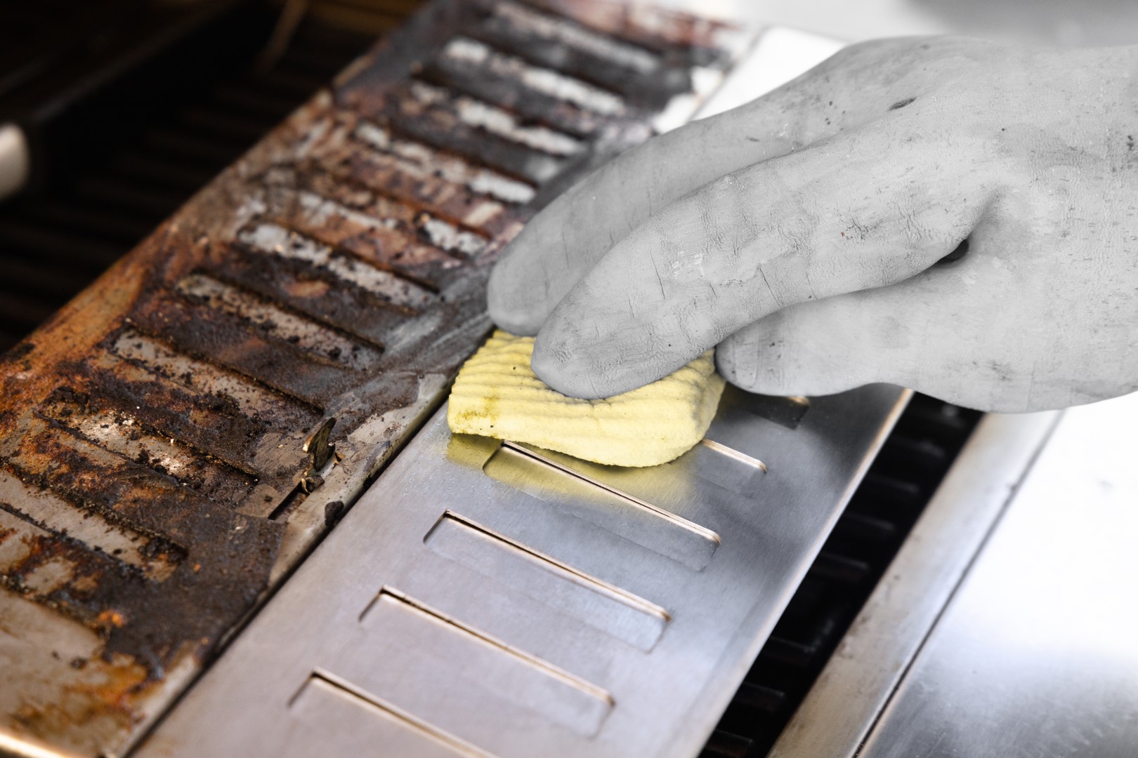 Mit unserem starken Stahlschild Edelstahlreiniger bekommt jeder Grill sein Fett weg!